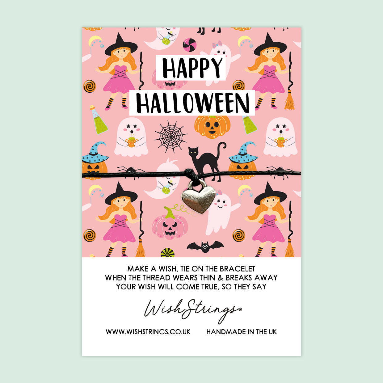 WishStrings ‘Happy Halloween’ Wish Bracelet | Pink Halloween Design with Witches, Ghosts & Pumpkins | Fun Gift for Spooky Celebrations