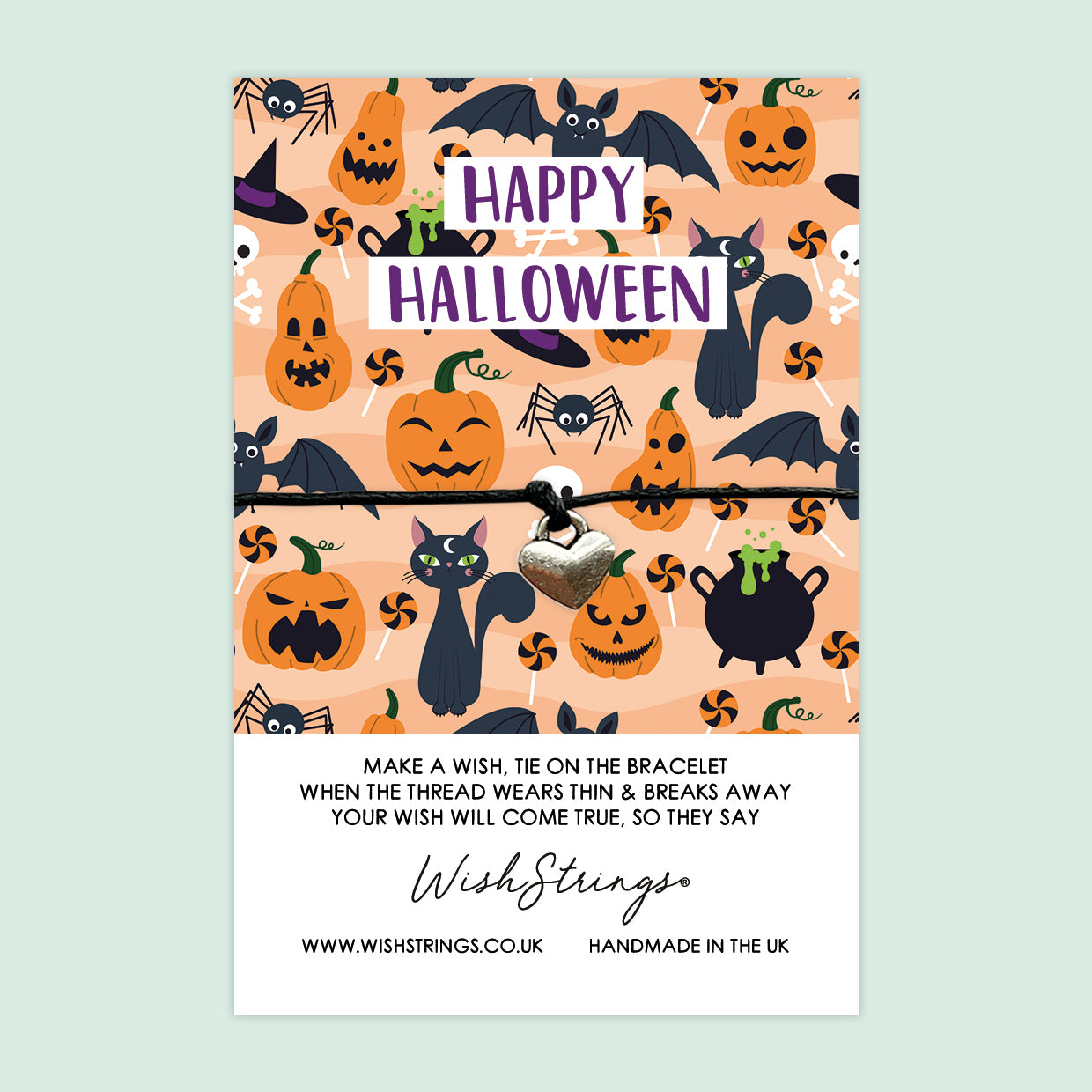 WishStrings ‘Happy Halloween’ Wish Bracelet | Halloween Design with Pumpkins and Black Cats | Spooky Gift for Halloween Celebrations
