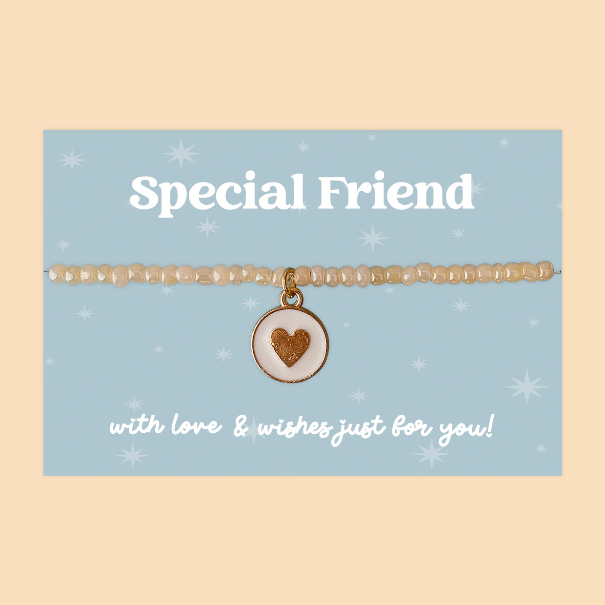 Little Wishes® “Special Friend” Peach Seed Bead Bracelet | Enamel Heart Charm Gift for Friend | Thoughtful Jewelry for Birthday, Thank You or Just Because
