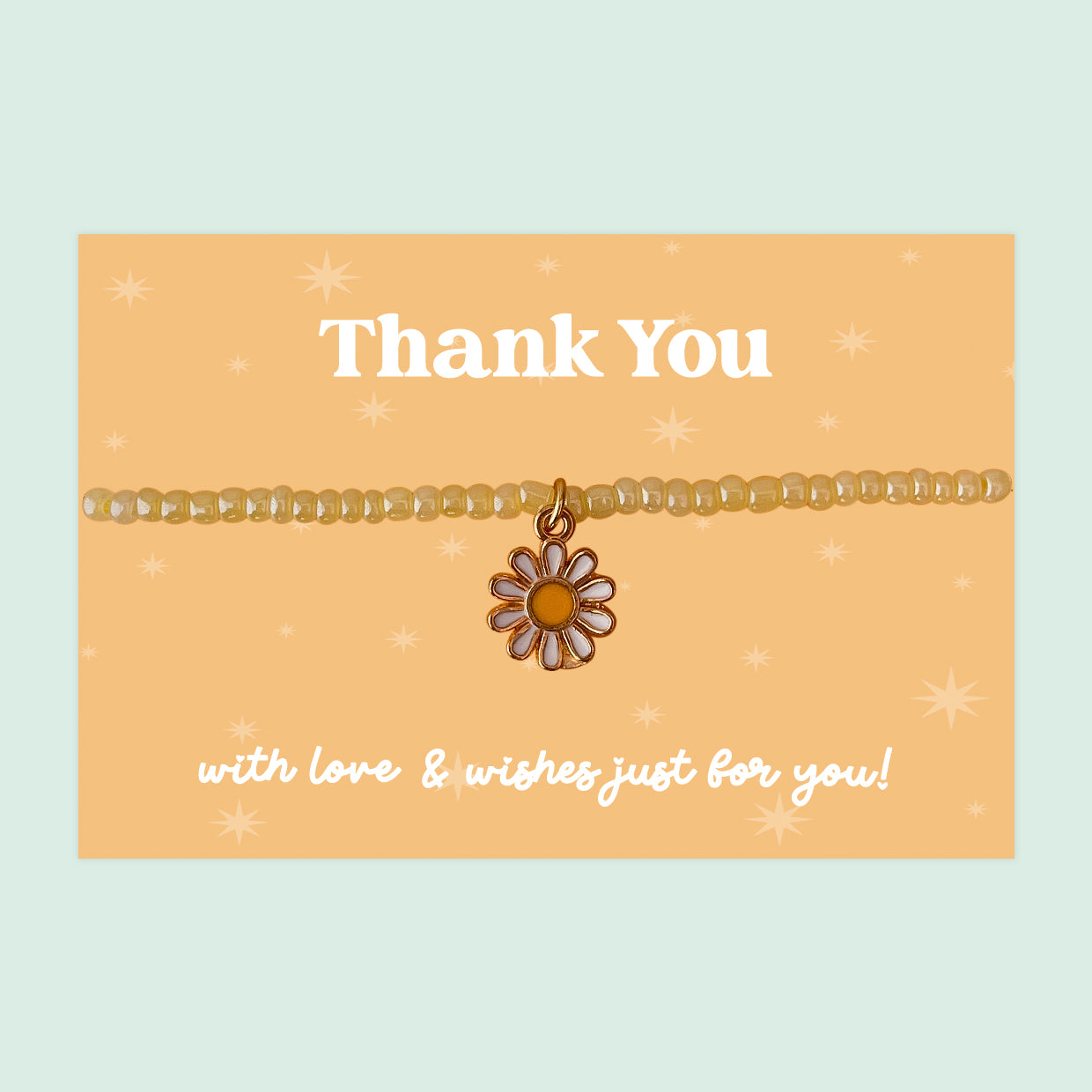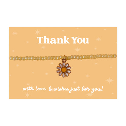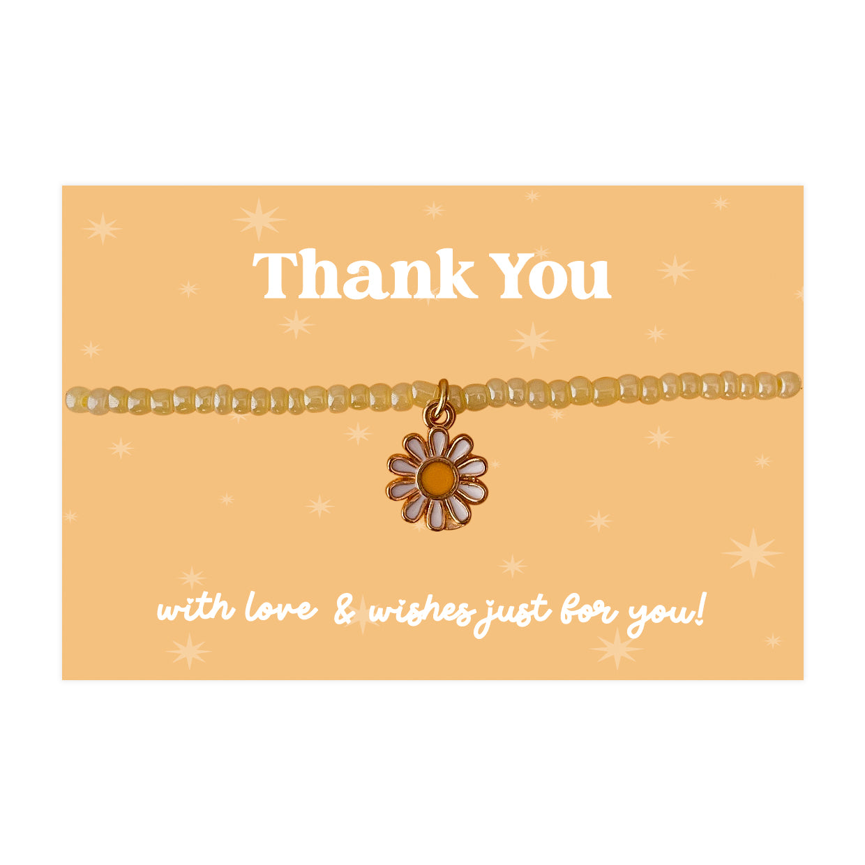 Little Wishes® “Thank You” Yellow Seed Bead Bracelet | Enamel Daisy Charm | Appreciation Gift for Teacher, Friend or Colleague | Presented on Yellow Gift Card