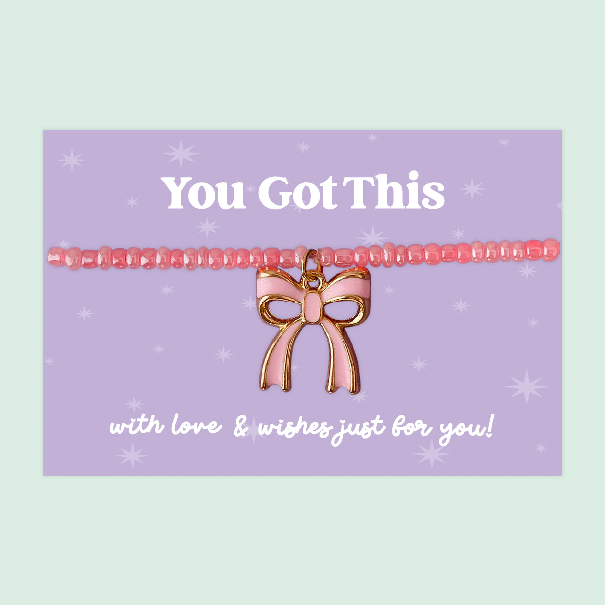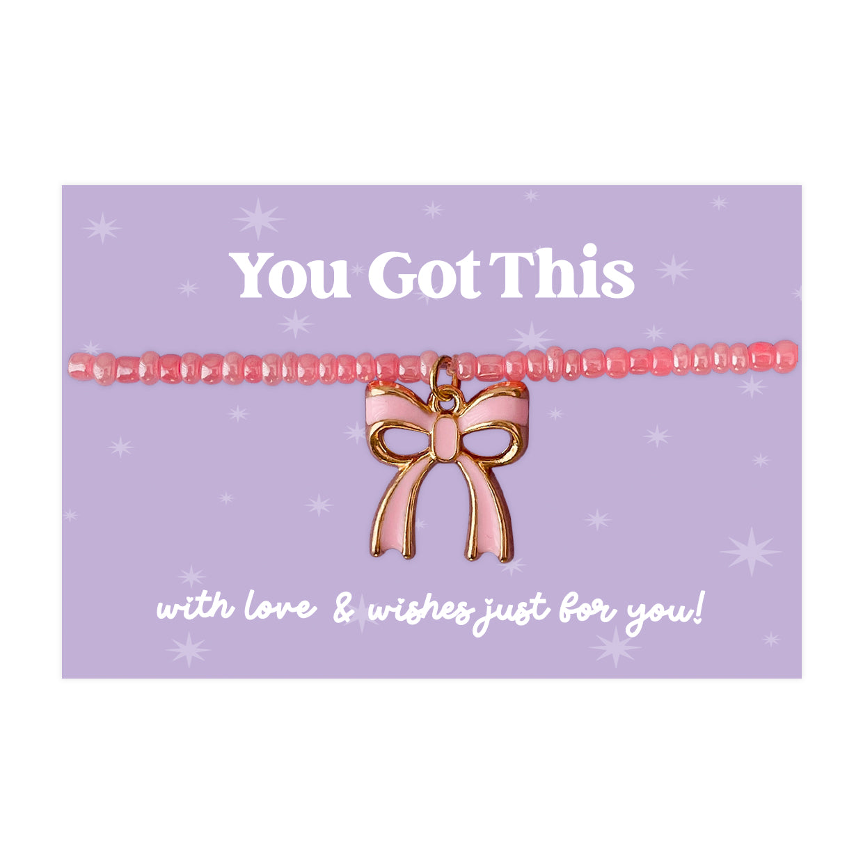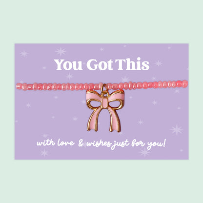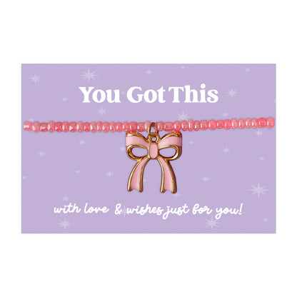 Little Wishes® “You Got This” Purple Seed Bead Bracelet | Enamel Pink Bow Charm | Uplifting Gift for Positivity, Support & Confidence | Presented on Purple Encouragement Card