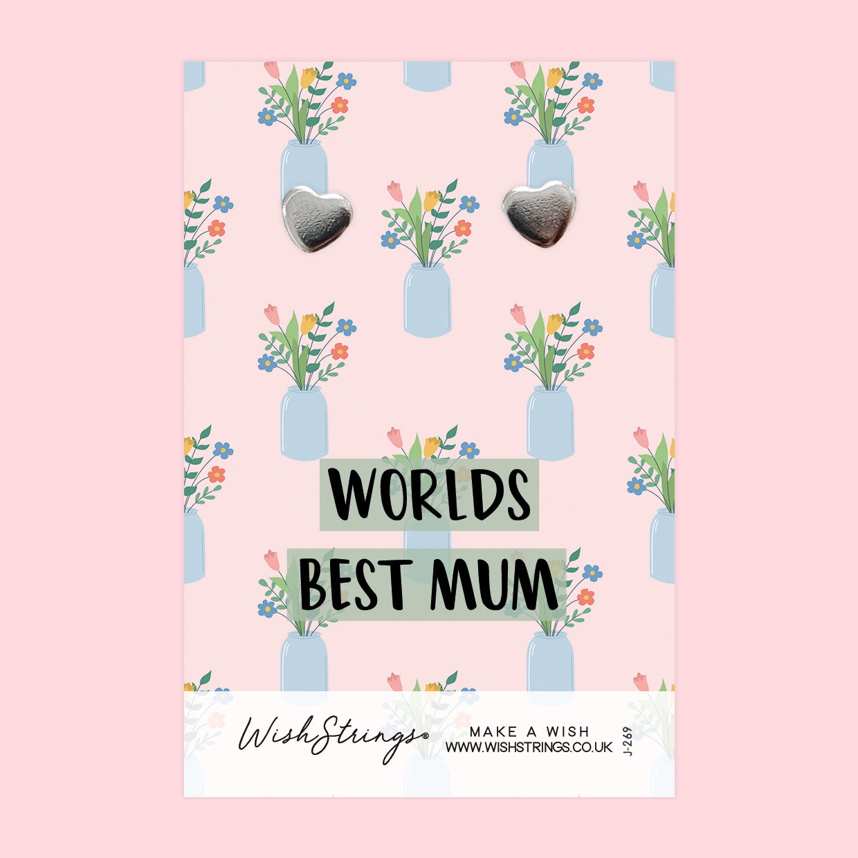 Worlds Best Mum - Silver Heart Stud Earrings | 304 Stainless - Hypoallergenic