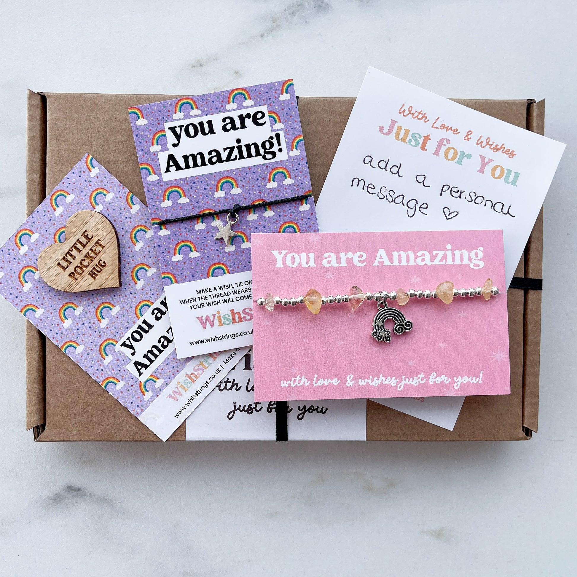 You Are Amazing WishBox Rainbow Gift Box | Includes WishStrings Wish Bracelet, Pocket Hug Token & Little Wishes Bracelet | Personalised Handwritten Message | Colourful Uplifting Gift for Friends and Loved Ones
