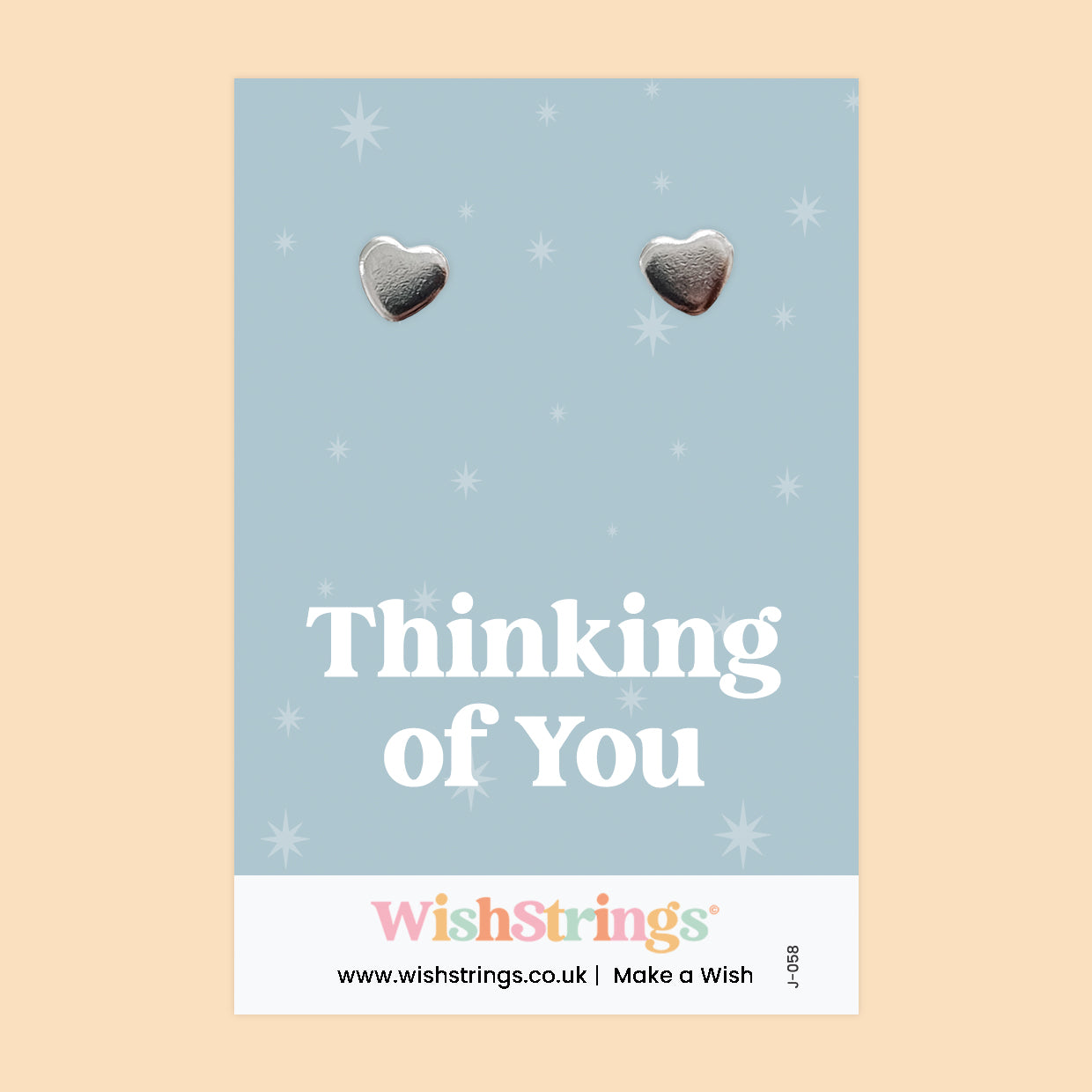 WishStrings® ‘Thinking of You’ Heart Stud Earrings on Gift Card | Thoughtful Jewellery Gift | Hypoallergenic & Nickel-Free | Handmade in the UK
