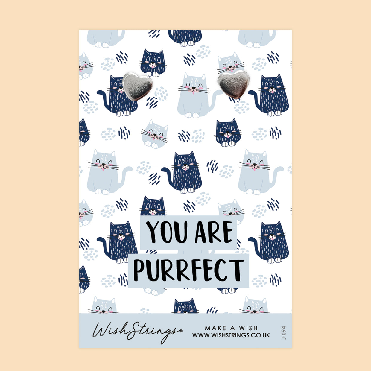 WishStrings® ‘You Are Purrfect’ Cat Stud Earrings on Gift Card | Cute Gift for Her | Hypoallergenic & Nickel-Free | Handmade in the UK